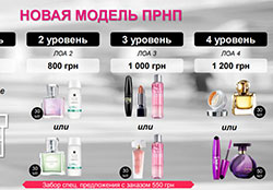 Представникам доступна спеціальна знижка 30% якщо замовляти продукцію більш ніж на 550 грн. протягом двох каталогів поспіль. Крім цього на новинки і товари, що реалізуються в розпродажах бувають знижки до 70%!